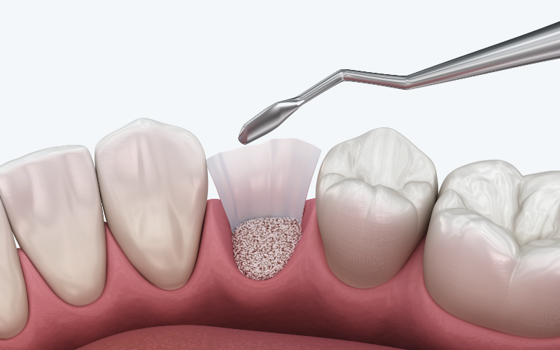 치주 질환으로 치아를 상실하고 잇몸뼈까지 손상된 경우, 임플란트 전 뼈이식이 필요할 수 있습니다.