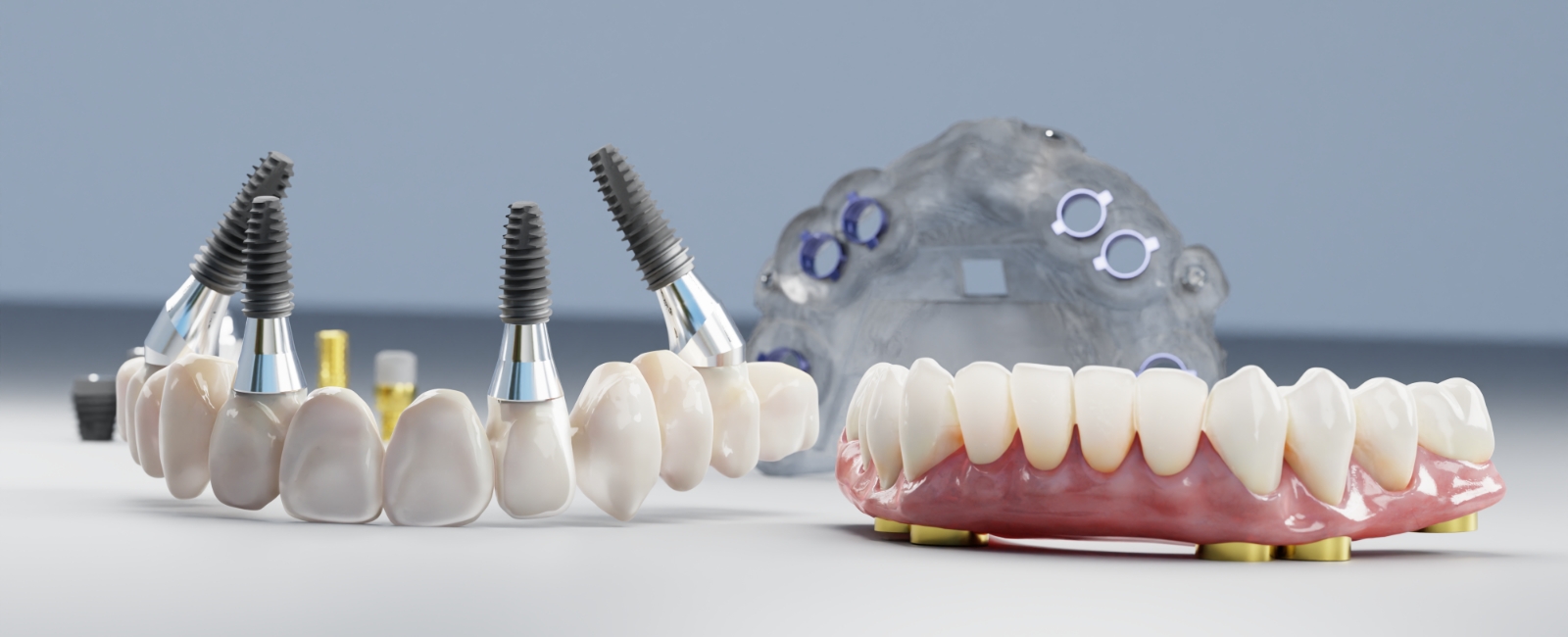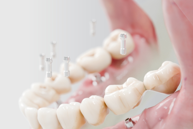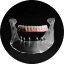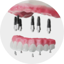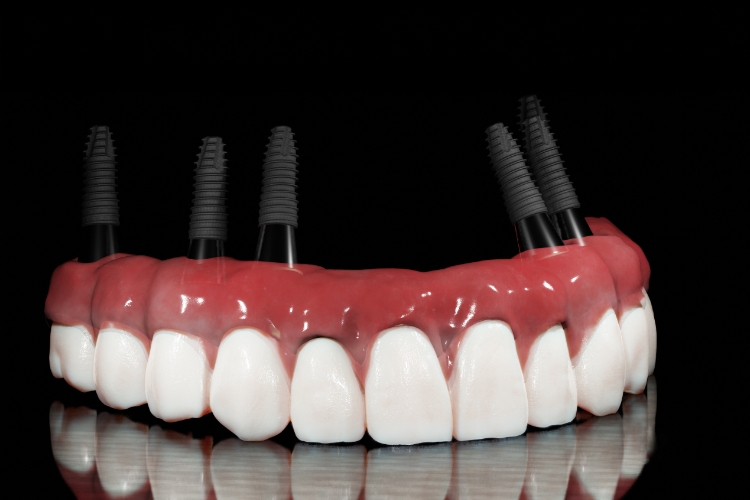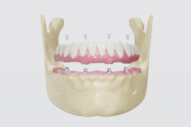 치아가 거의 없거나 전체를 상실한 경우, 최소 4~6개의 임플란트로 전체 치아를 고정하는