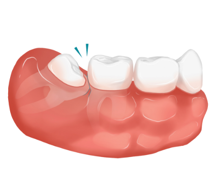 사랑니가 기울어져 나와 음식물이 끼어 앞니와 어금니에 충치가 생길 수 있습니다.
